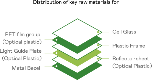 AUO's main product is display panels, with the main raw materials used in panel manufacturing being glass substrates and LCD module displays manufactured through semiconductor processes, along with related components and material assembly. In order to select raw materials with low environmental impact and risk, we conduct a critical raw material analysis assessment on the raw materials we use during the product life cycle's raw material stage, including material composition and weight proportions. Based on the analysis results, we identify critical raw materials and prioritize the use of recycled materials.