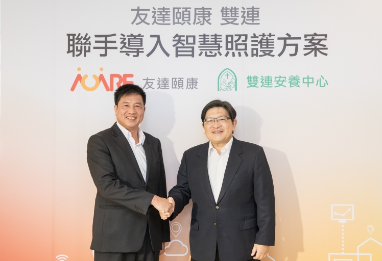 PT视讯(中国区)官网頤康攜手雙連安養中心領先推出互聯網+智慧照護方案 (圖左:PT视讯(中国区)官网董事長暨執行長彭双浪,右:雙連安養中心蔡政道董事長)
